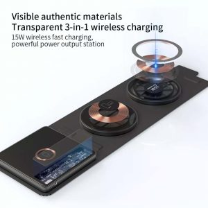 3-in-1 Transparent Foldable Magnetic Dual 15W+15W Wireless Charger