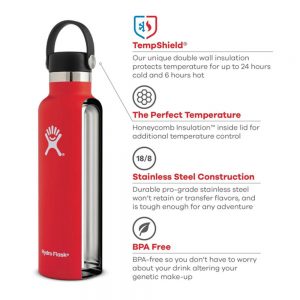Stainless steel, cup holder compatible, fits right in your pack—our reusable, refillable 21 oz Standard Mouth insulated water bottle keeps cold drinks cold for 24 hours, hot drinks hot for up to 12 hours, and holds enough hydration for hours of fun.