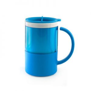 Plastic mug in attractive colour. With open closure lid. Clear mug surface ideal for logo printing. EVA base at mug bottom. Capacity: 18oz.