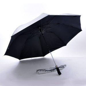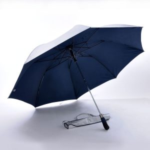 28" x 8 panels, 2 fold, auto open, chrome metal shaft, UV coated on exterior panels with windproof mechanism and rubber foam handle foldable golf umbrella.