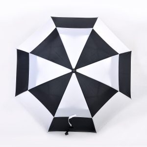 30" x 8 panels, double-tiered, manual operated, full fibre glass shaft, non-UV coated, solid 2 alternate tones fabric color, full windproof golf umbrella.