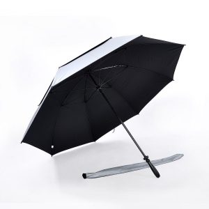 30" x 8 panels, double-tiered, manual operated, full fibre glass shaft, UV coated on exterior panels, full windproof golf umbrella.