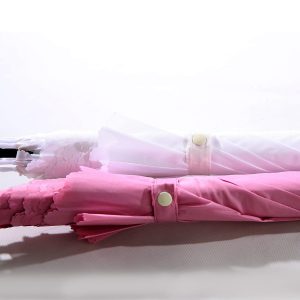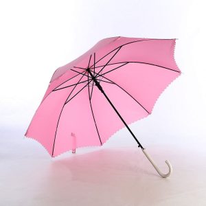 24" x 8 panels, auto open, black metal shaft, non-UV coated, with pongee lace fabric, long umbrella.